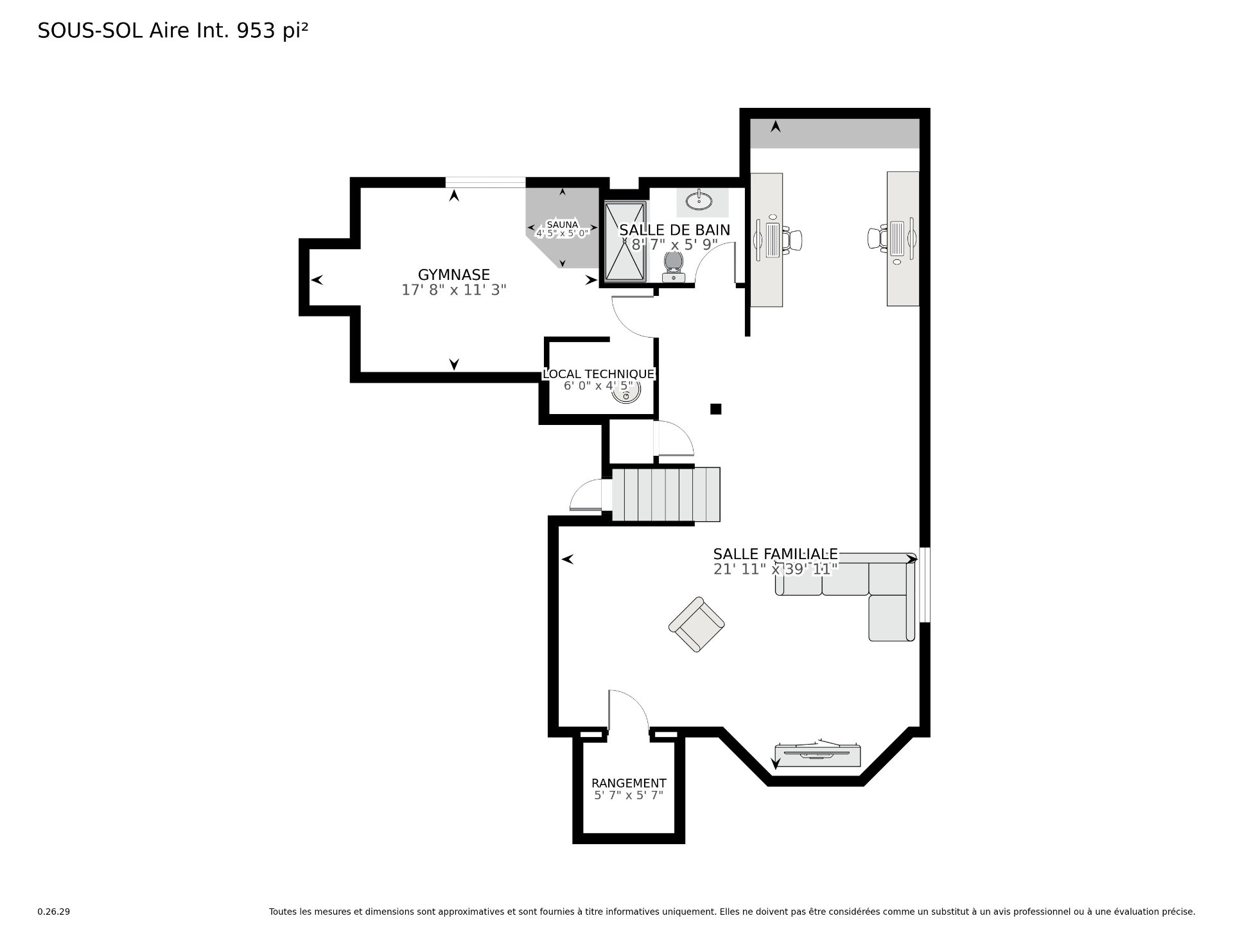 Le sous-sol entièrement aménagé ajoute une valeur considérable avec une grande salle familiale polyvalente, un espace avec gym complet* discutable, un sauna infrarouge* discutable dans la 4e chambre, une salle de bain avec douche en verre ainsi qu'une chambre froide et plusieurs rangement supplementaire, répondant parfaitement aux besoins d'un mode de vie moderne et actif.