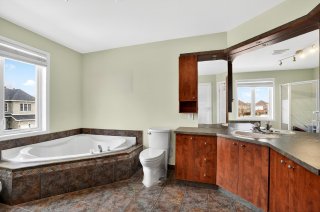À l'étage, trois chambres de bonnes dimensions, dont une vaste chambre principale, assurent intimité et confort. La salle de bain principale propose un bain podium et une douche indépendante.