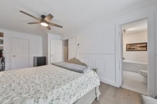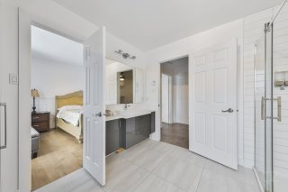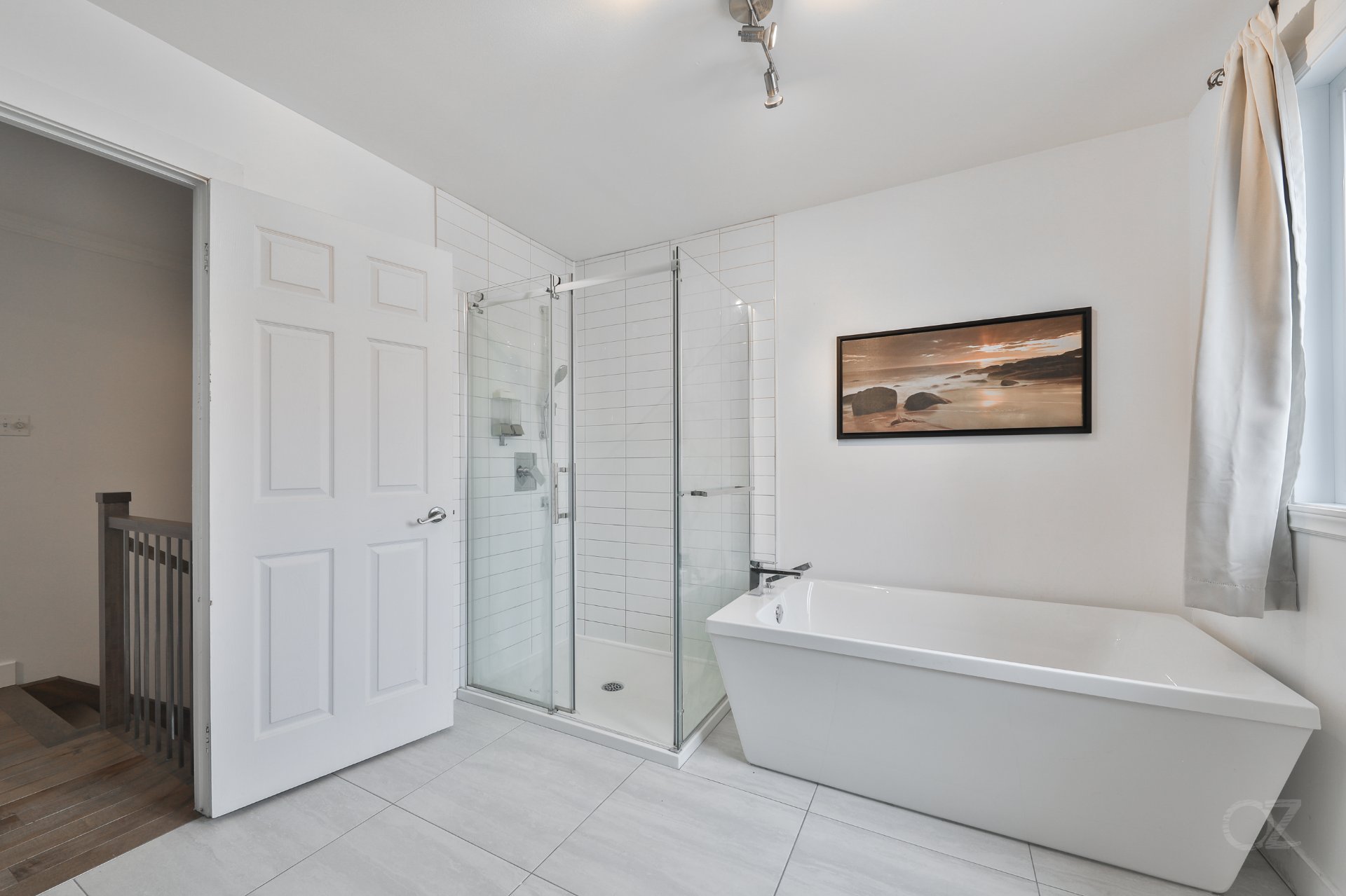 À l'étage, vous trouverez des chambres de bonnes dimensions, dont une chambre principale spacieuse. La salle de bains principale, entièrement rénovée, se distingue par sa douche vitrée indépendante et sa baignoire autoportante.