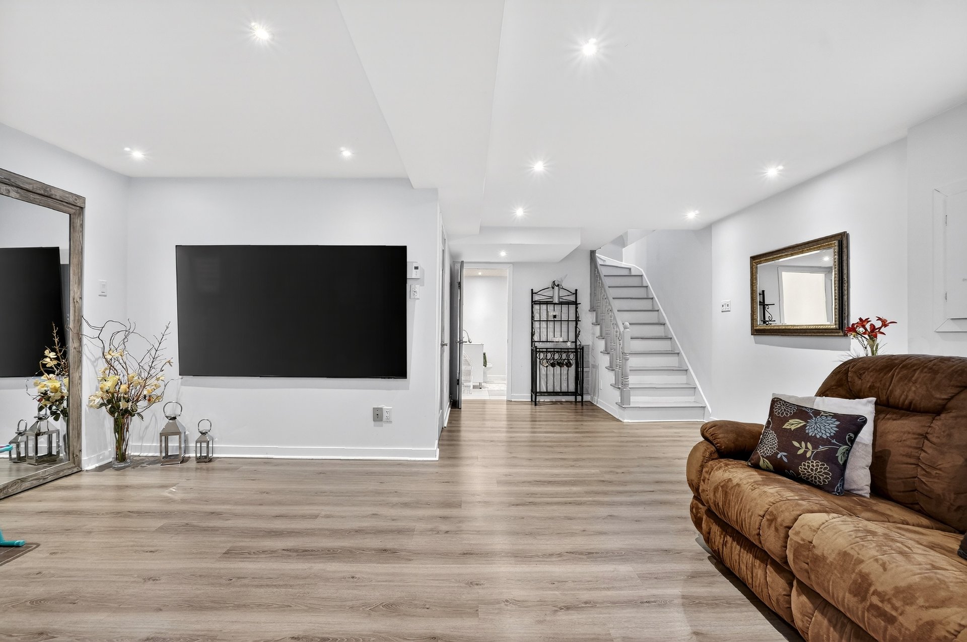 Clé en main située à Chomedey offrant 3 chambres, cuisine moderne, salle de bain et salles d'eau rénovées, ainsi qu'un immense sous-sol aménagé avec salle familiale, foyer et accès au garage. Aire de vie lumineuse plein sud à concept ouvert avec salle à manger conviviale et salon spacieux, idéale pour la vie de famille. Grande terrasse arrière couverte donnant sur une cour clôturée, parfaite pour recevoir parents et amis en toute saison. Garage intégré, salle de lavage indépendante et généreux espaces de rangement. Propriété tout brique soigneusement entretenue avec plusieurs améliorations au fil des ans. Emplacement stratégique! Voir addenda